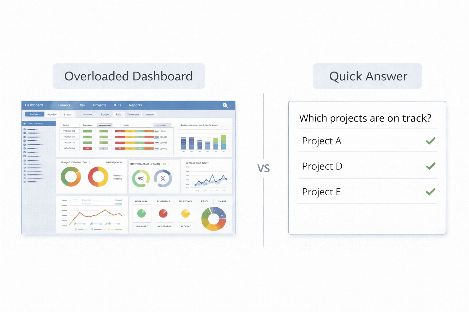 There is one reliable test: track how many questions in your governance meeting were answered by the dashboard before anyone asked them. If the answer is most of them, the dashboard is working. If leadership is regularly asking questions that require the PMO lead to dig into a report or make a call to a project manager, the dashboard is not working, regardless of how impressive it looks.